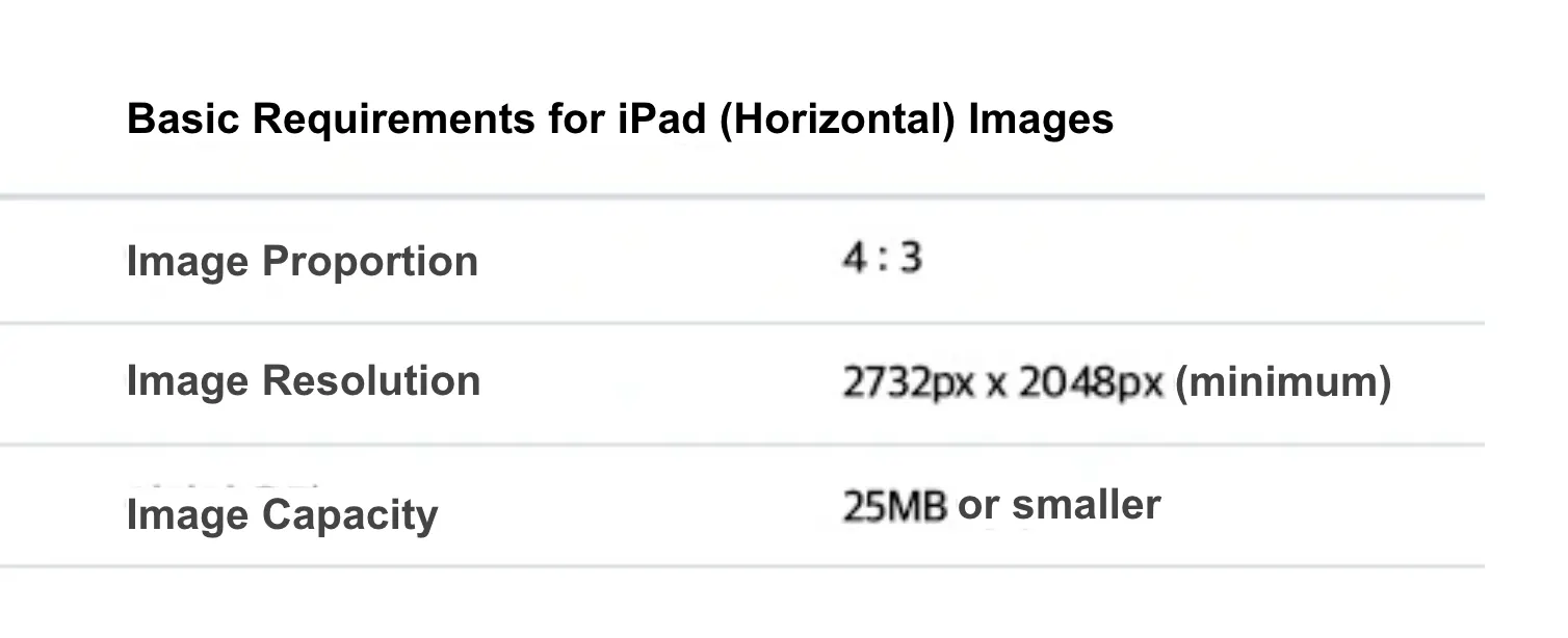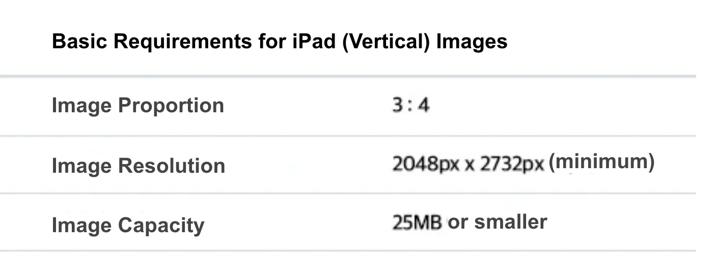 Proportion and resolution differ based on whether the iPad is horizontal or vertical.