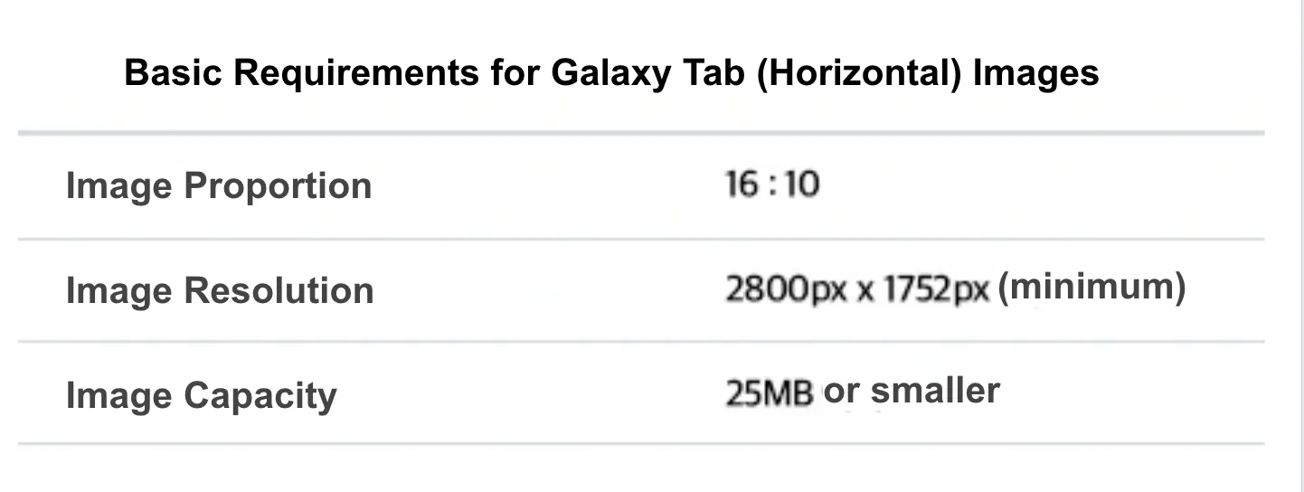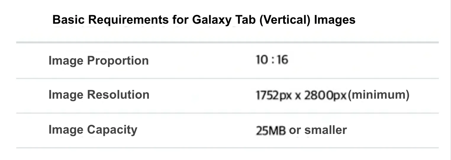 Likewise, proportion and resolution differ for Galaxy Tab based on whether it is horizontal or vertical.
