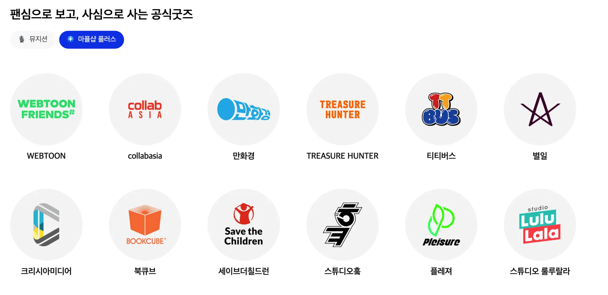 마플샵 홈페이지에는 현재 마플샵 플러스로 활동 중인 기업의 리스트를 볼 수 있는 페이지가 있습니다. 이 기업들은 현재 스토어를 운영 중이고 기업몰의 배너까지 공개한 곳들입니다. 모든 준비가 끝나면 마플샵에서 이렇게 기업 로고와 함께 기업몰을 노출시키고 있습니다.