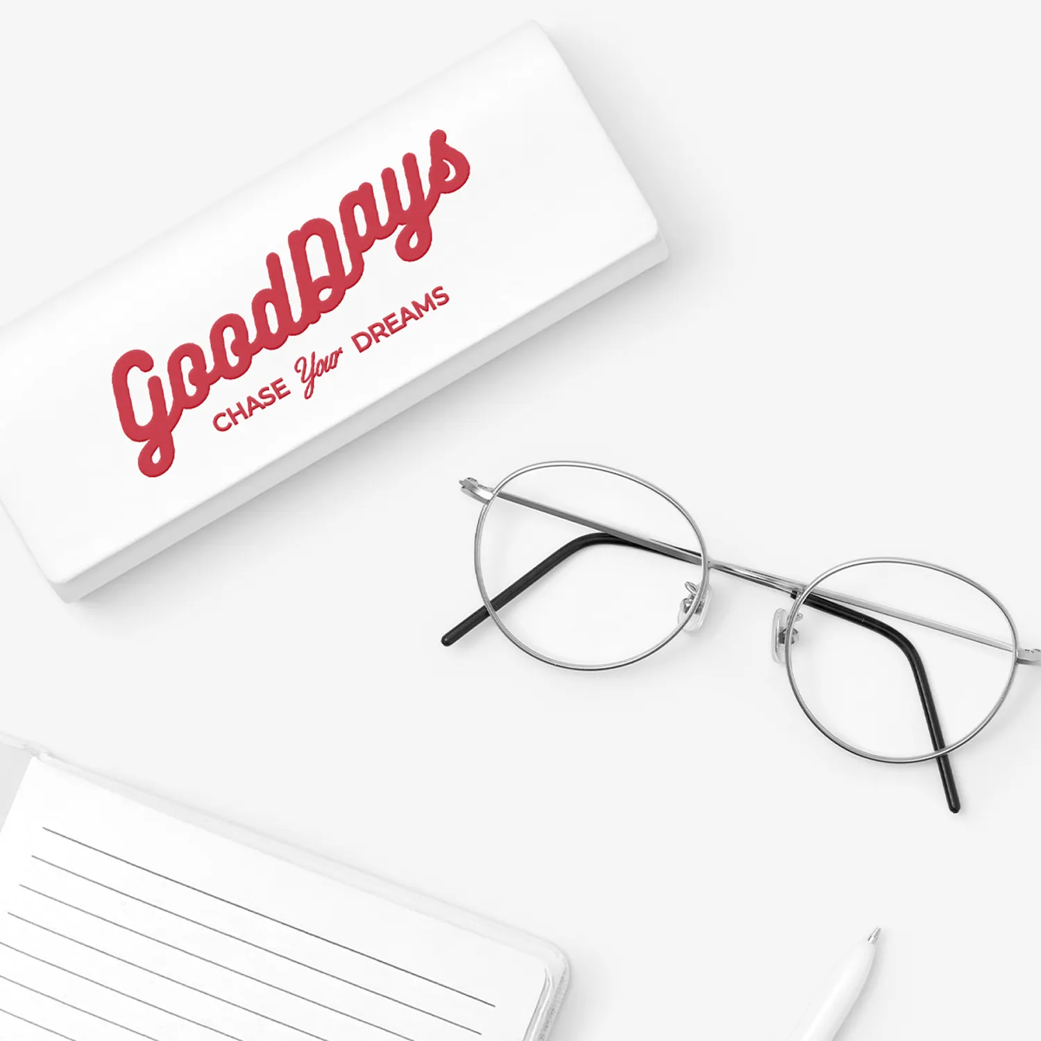 A sturdy hard eyeglass case with built-in magnetic closure for smooth opening and closing.