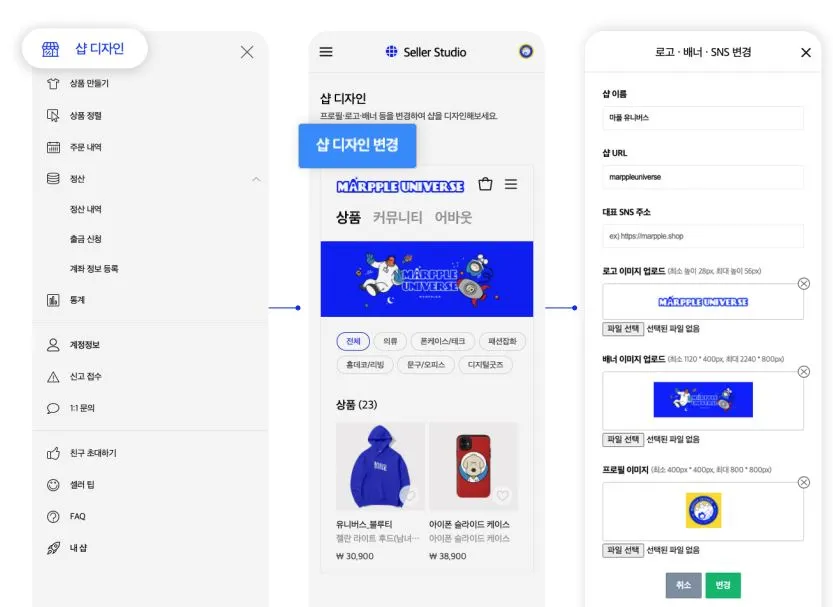 Through the “Shop Design” menu in MarppleShop Studio, you can design the main page of your shop.