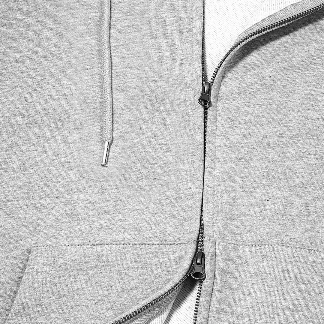 This zip-up hoodie is made from a blend of 60% cotton and 40% polyester, offering a soft touch and quick sweat absorption and drying for comfortable wear.