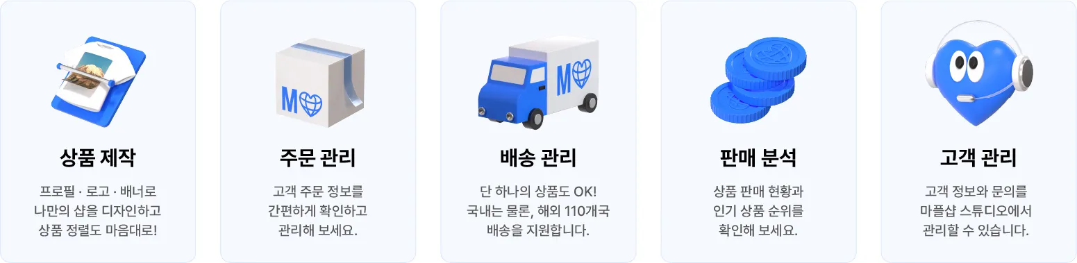 마플샵에서는 나만의 상품 제작・판매부터, 브랜드 커머스까지 한 번에!