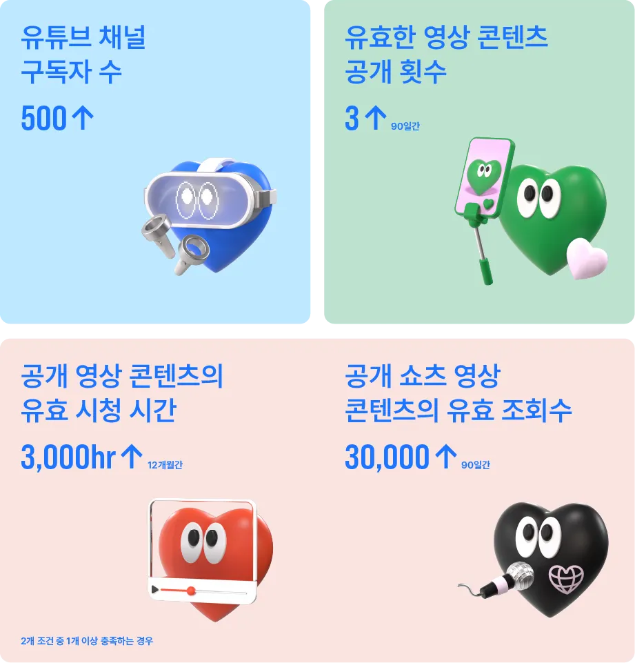 지난 12개월간, 공개 동영상의 유효 시청 시간 3,000시간 이상