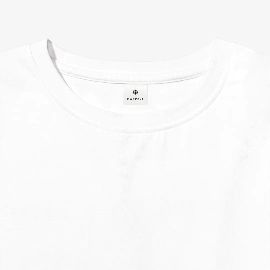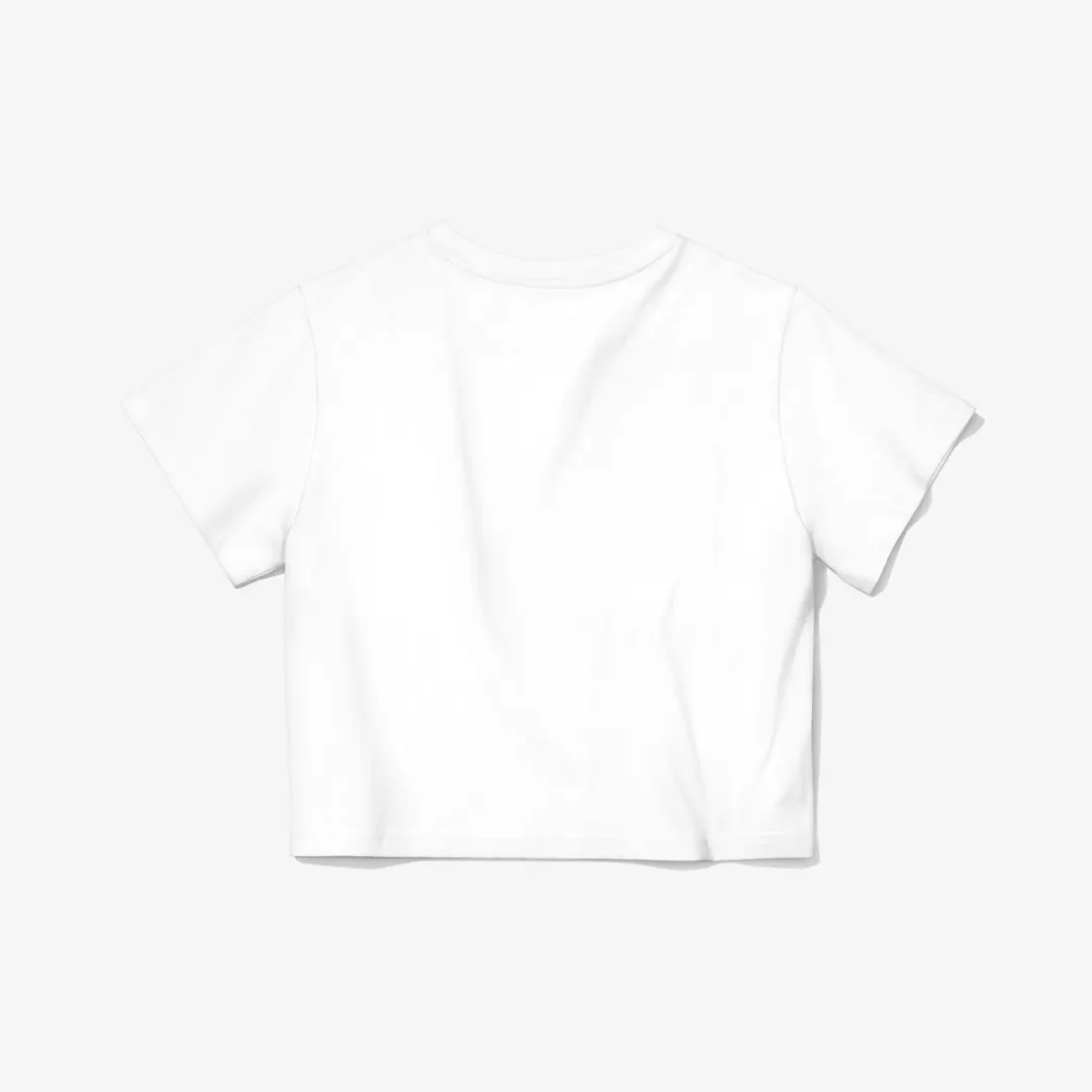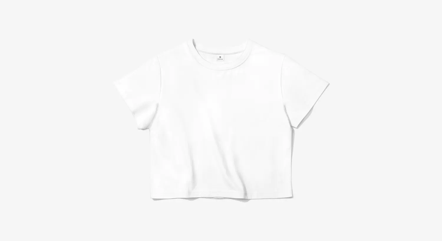 This product is a comfortable semi-crop t-shirt with a non-restrictive length, designed for a relaxed fit.