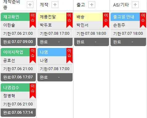 └ 재고팀에서 관리하는 상품이 아닌 경우 : 완료된 태스크가 진행중으로 돌아간 경우 반드시 완료 처리 해야 하며, 재고팀 관리 상품인지 모를 경우 진행중으로 두고 변경 내용을 각 방에 반드시 전달