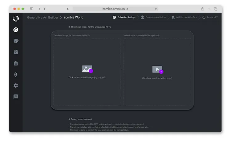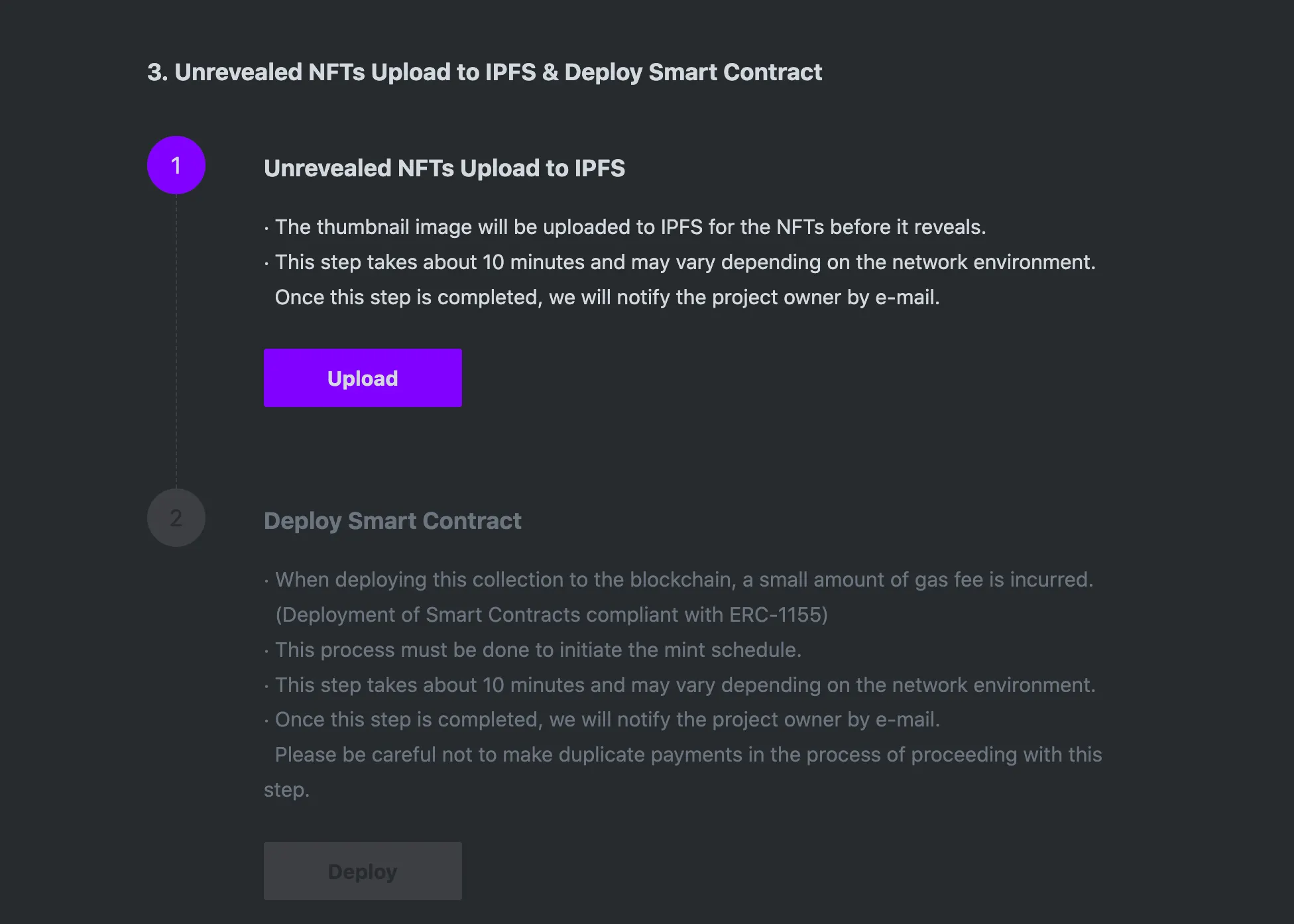 You cannot edit the thumbnail image / collection title / item name / total number of items once you have completed the Unrevealed NFTs Upload to IPFS step.
