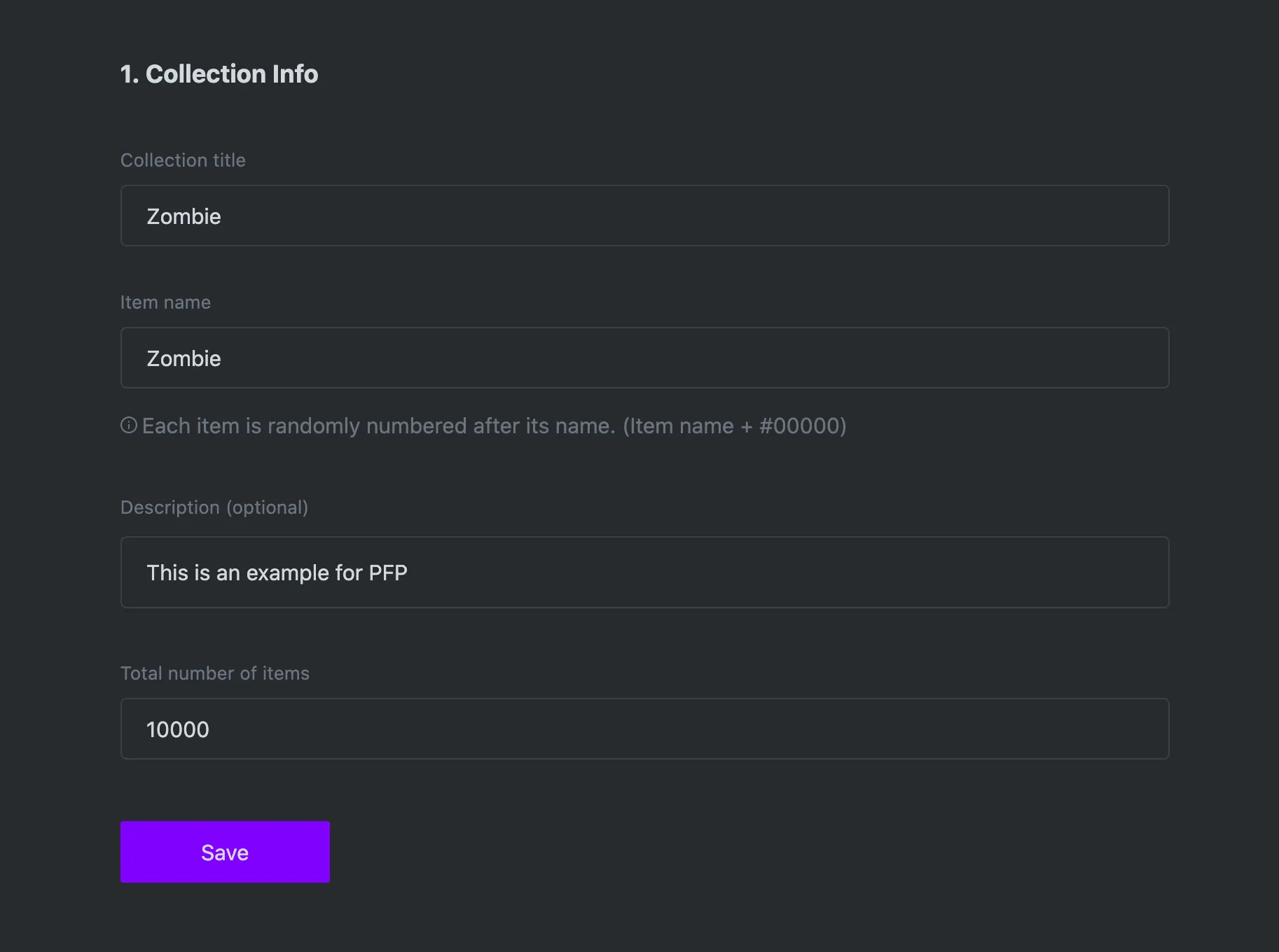 Item Name: This is the name of your NFT. The item name becomes (Item name + #00000).