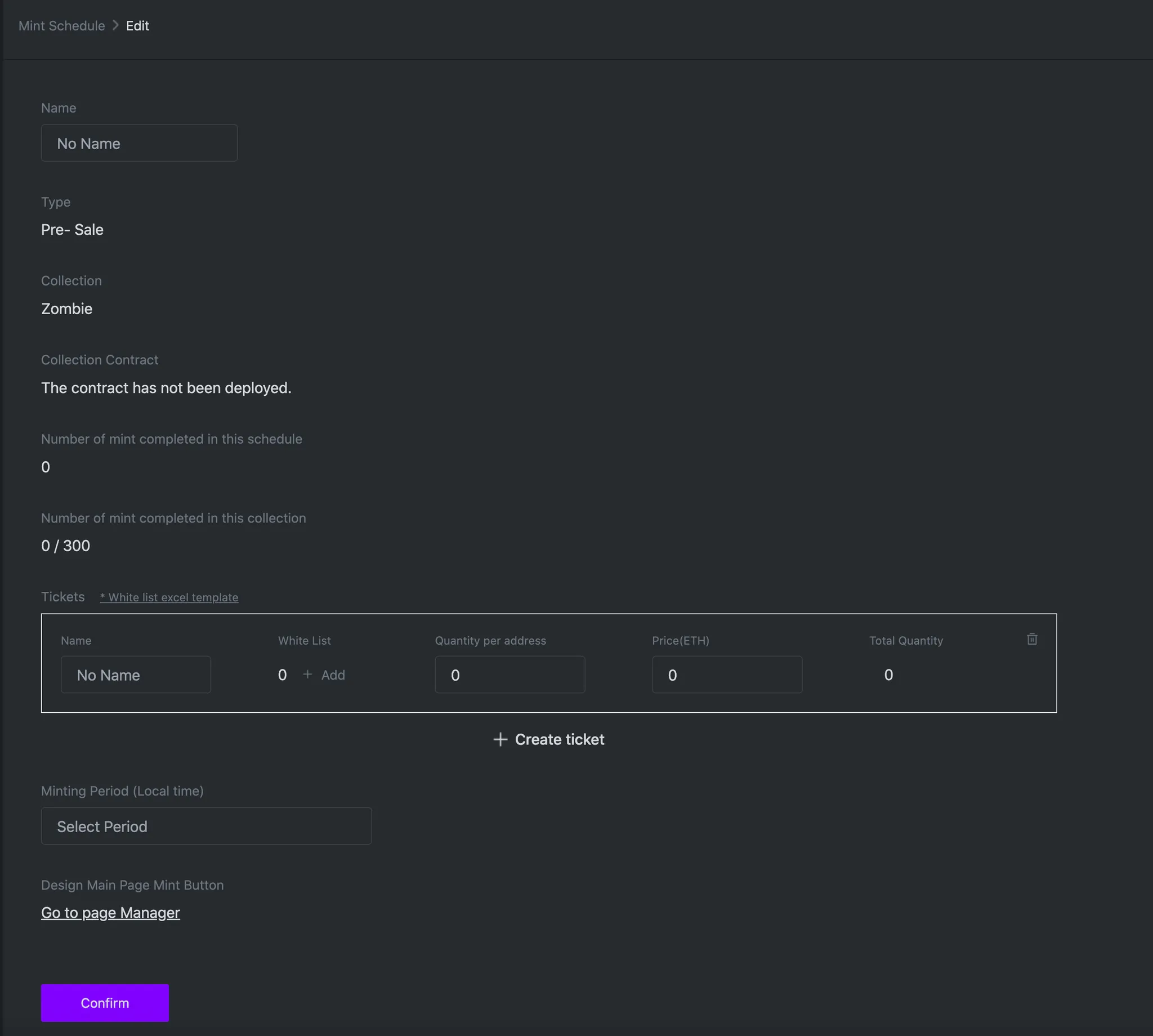 To confirm the minting schedule, you should have the Smart Contract of the collection deployed.