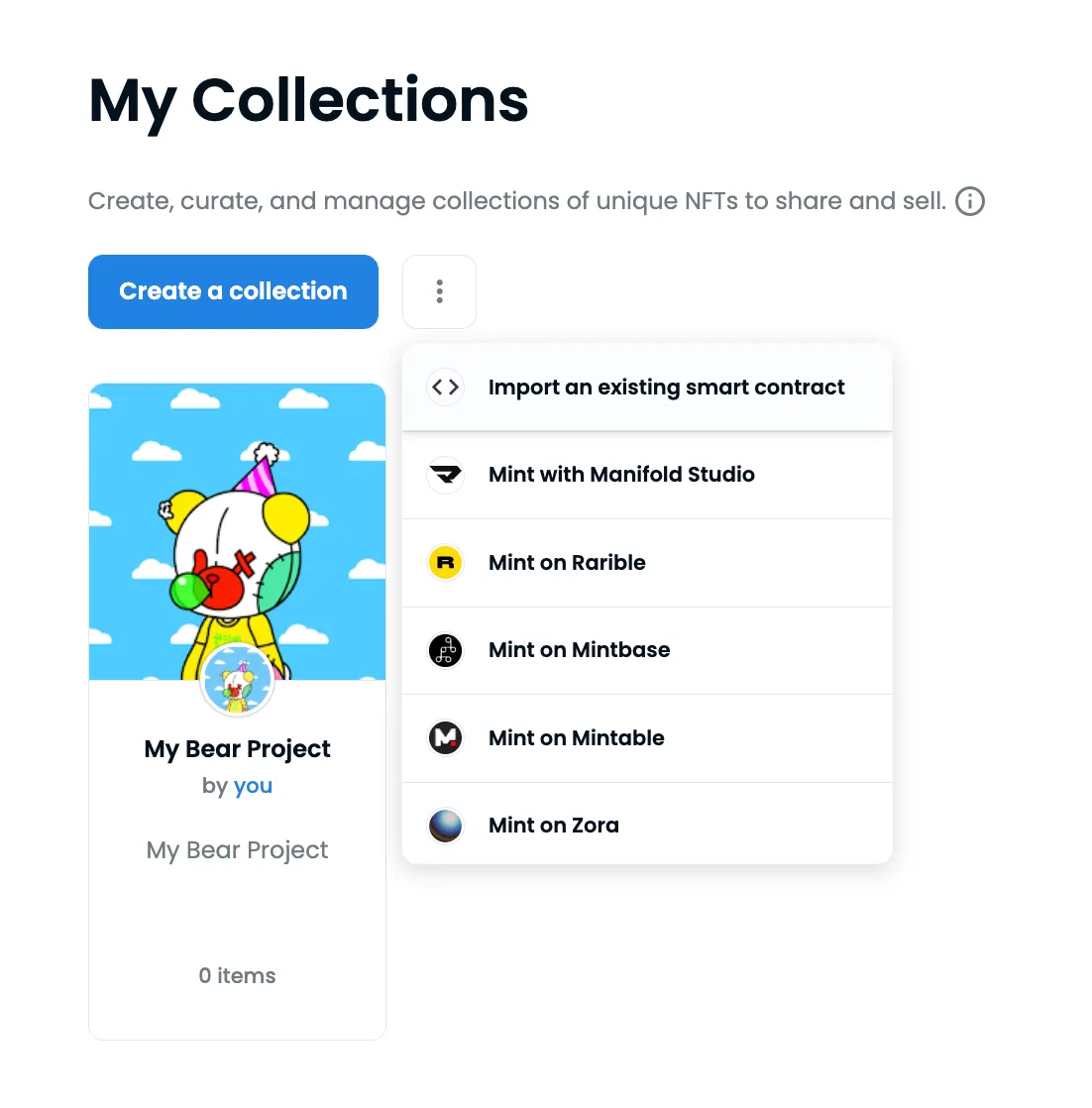 Step 2. In "My Collection", click "Import an existing smart contract".