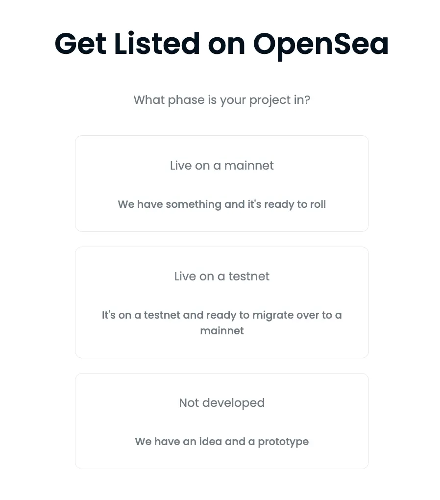 Step 3. If you followed well, you can check 3 buttons in the "Get Listed on OpenSea" menu. Not only can you link the project when in OpenSea, but you can also practice on the test net according to the progress of the project.